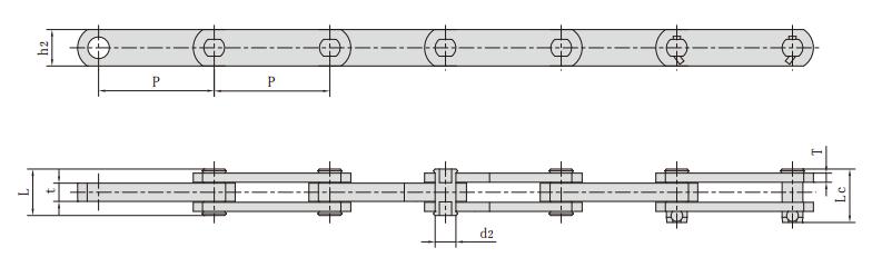 鏈號 節(jié)距 銷軸直徑 銷軸長度 鏈板高度 鏈板厚度 抗拉強(qiáng)度 平均抗拉強(qiáng)度 每米長重