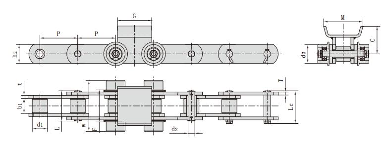 P d1 d3 b1 d2 L Lc h2 t/T C F W G M Q q