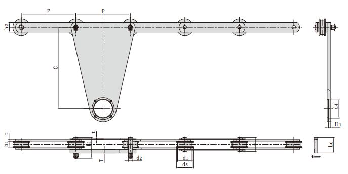 鏈號 節距 滾子直徑 內節內寬 銷軸直徑 銷軸長度 鏈板高度 鏈板厚度 附件尺寸 抗拉強度